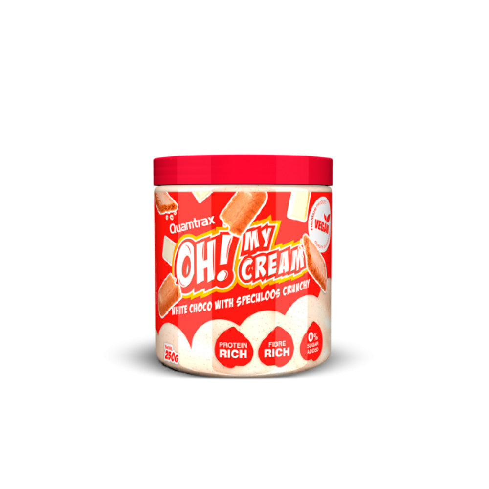Disfruta de nuestras deliciosas cremas OH! MY CREAM de Quamtrax, con trocitos de galletas Speculoos y galleta negra tipo Oreo. Con una mezcla innovadora de ingredientes para llenar tu dieta de fibra y proteína, cada cucharada aporta muchos beneficios para tu salud intestinal.