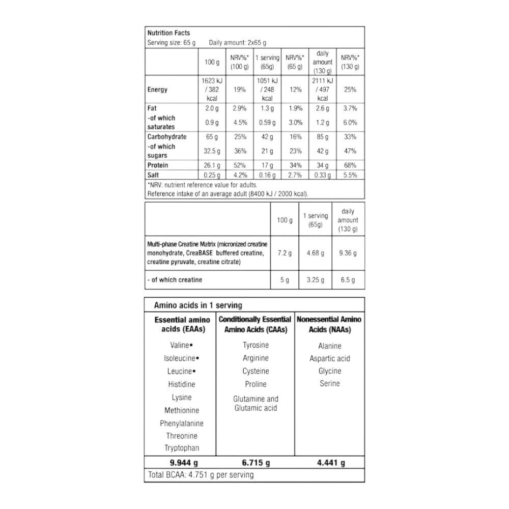 • Enriquecido con Creatina Monohidrato para potenciar la fuerza y la masa magra.