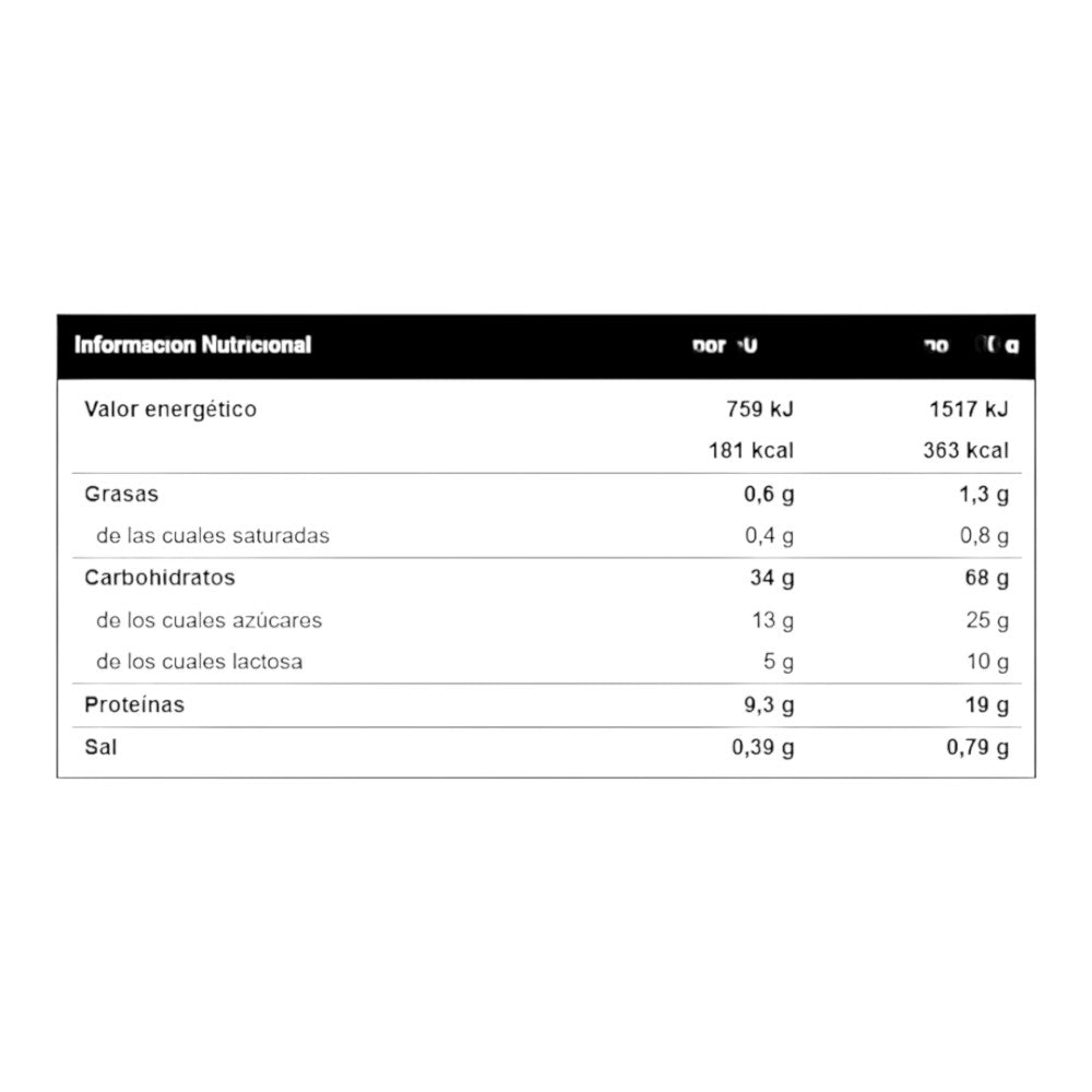 - Contiene concentrado de proteína de suero WPC Lacprodan® 80 (Arla®).