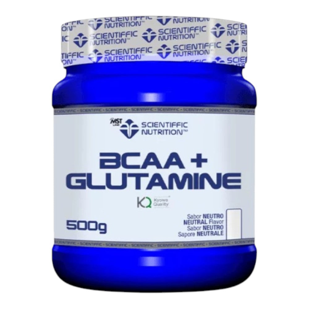 BCAA + Glutamine Kyowa® 500 Gr de Scientffic Nutrition es un suplemento formulado con aminoácidos ramificados (BCAA) en proporción óptima 2:1:1 y glutamina de calidad Kyowa®, reconocida por su alta pureza y biodisponibilidad. Esta combinación actúa sinérgicamente para apoyar la recuperación muscular, reducir el catabolismo y mejorar el rendimiento durante entrenamientos intensos.