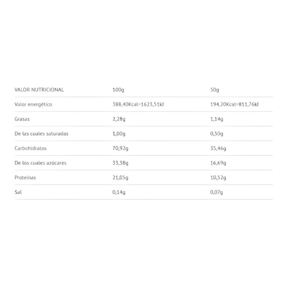 - 75,5 g de Hidratos de carbono por cada 100 g de producto.