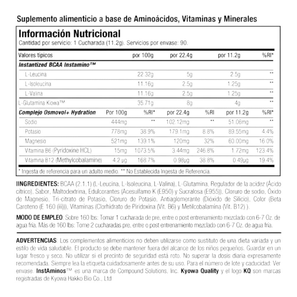 XT5 Refuel te proporciona aminoácidos de cadena ramificada de la mejor calidad InstAminos™ producidos por Compound Solutions. Se trata de unos aminoácidos instantáneizados que han sido sometidos a un proceso de elaboración de alta tecnología, para que de esta forma, los BCAAs se disuelvan completamente al mezclarlos con agua. Los BCAAs ordinarios y de menor precio, al mezclarse con agua, no se disuelven bien y se producen molestos grumos que flotan sobre el líquido. Esto no solo hace tomarlos sea más complicado, sino que además implica que se necesitará más tiempo para que los aminoácidos lleguen al músculo.