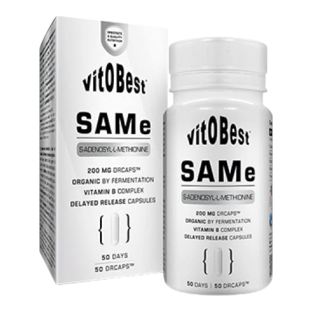 SAMe, de Vitobest® es un suplemento que se forma en el organismo por una reacción enzimática entre el ATP (adenosin- trifosfato) y la metionina. Fue descubierta en 1952 en Italia y ha sido ampliamente investigada y fabricada. SAMe actúa estrechamente con el ácido fólico y la vitamina B-12 y funciona como un donante de metilo.
