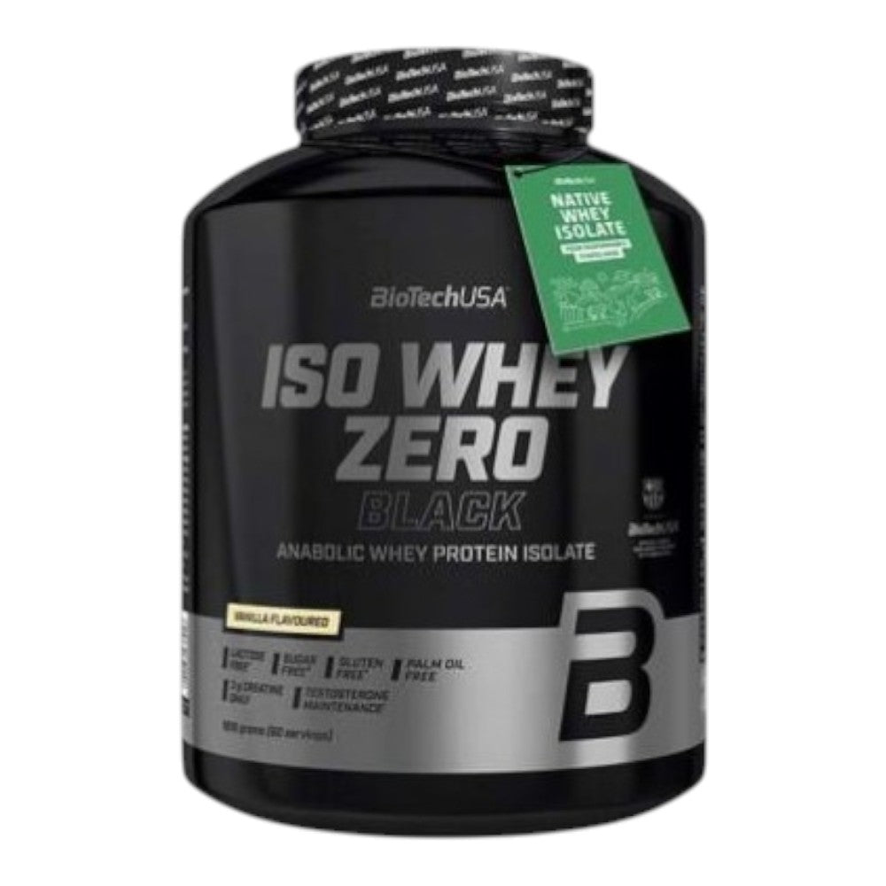 La nueva Iso Whey ZERO Black de BioTech USA es un suplemento en polvo que contiene una fórmula avanzada con entre un 72% y 77%* de aislado de proteína de suero de leche, 3,4 g de monohidrato de creatina micronizado, L-glutamina, arginina AKG, triptófano, Zinc y vitamina B3.