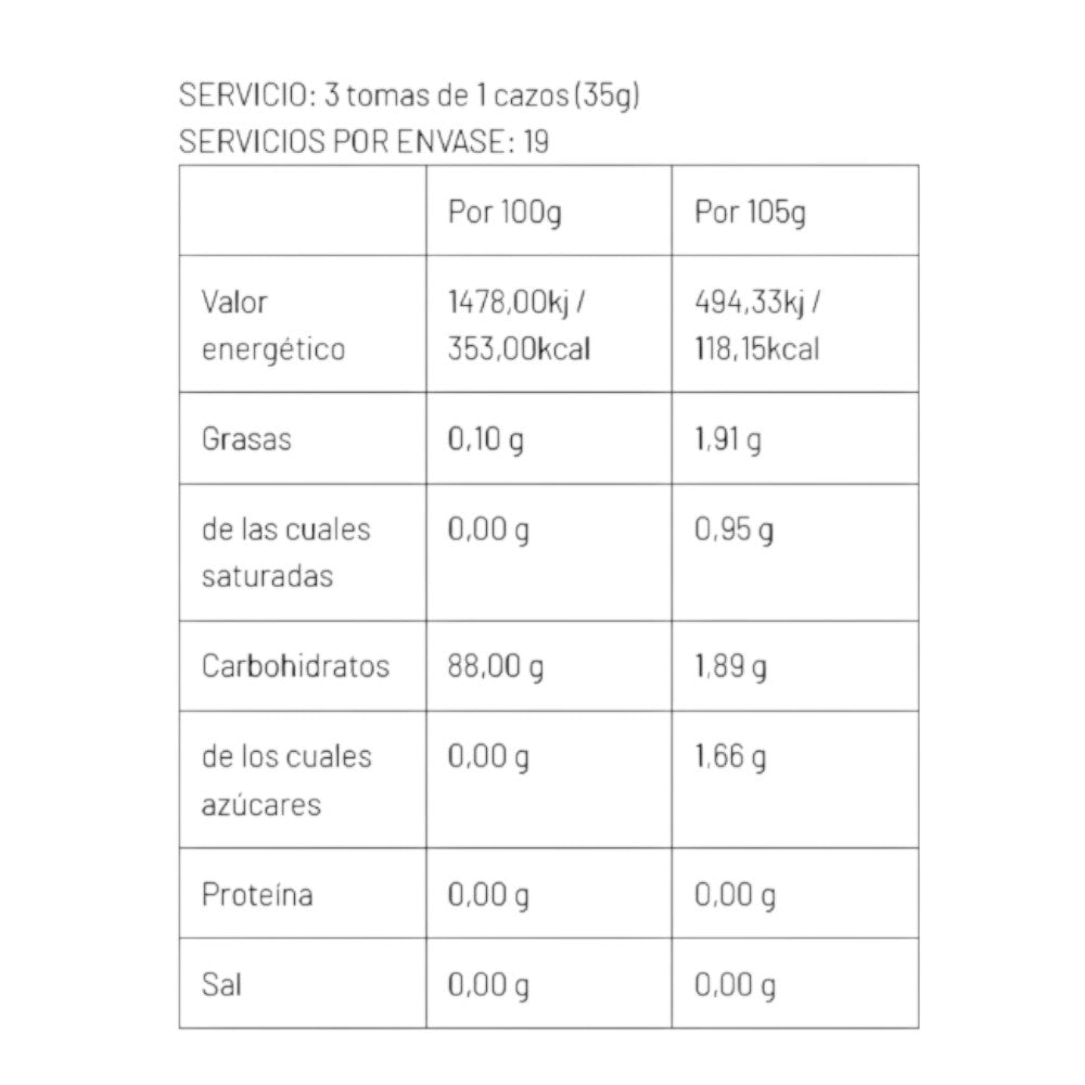 Su particular estructura le confiere un alto peso molecular, muy parecido al glucógeno, lo que permite que su paso por el tracto digestivo sea mucho más rápido que los carbohidratos convencionales.