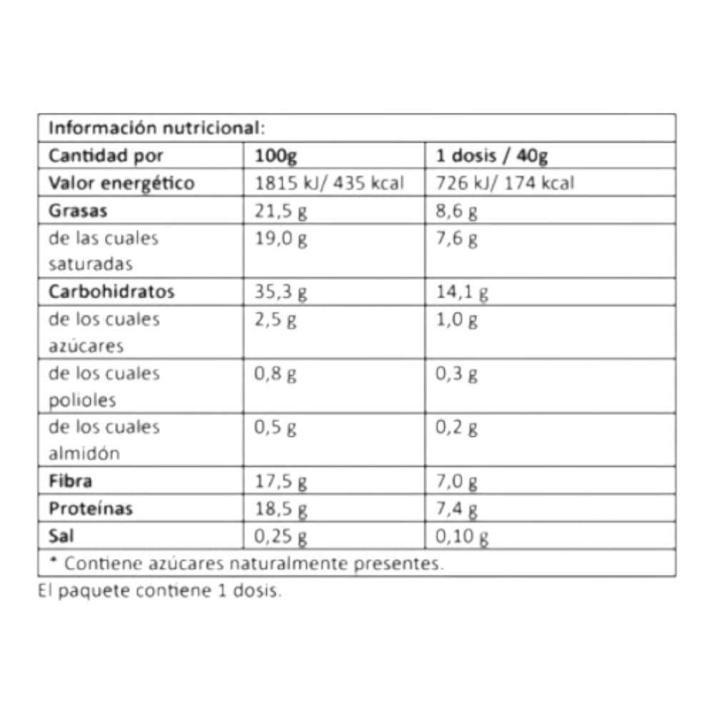 - Consultar el etiquetado específico del sabor para alérgenos exactos. Puede contener trazas de gluten, leche, soja, huevos, frutos secos y cacahuetes.