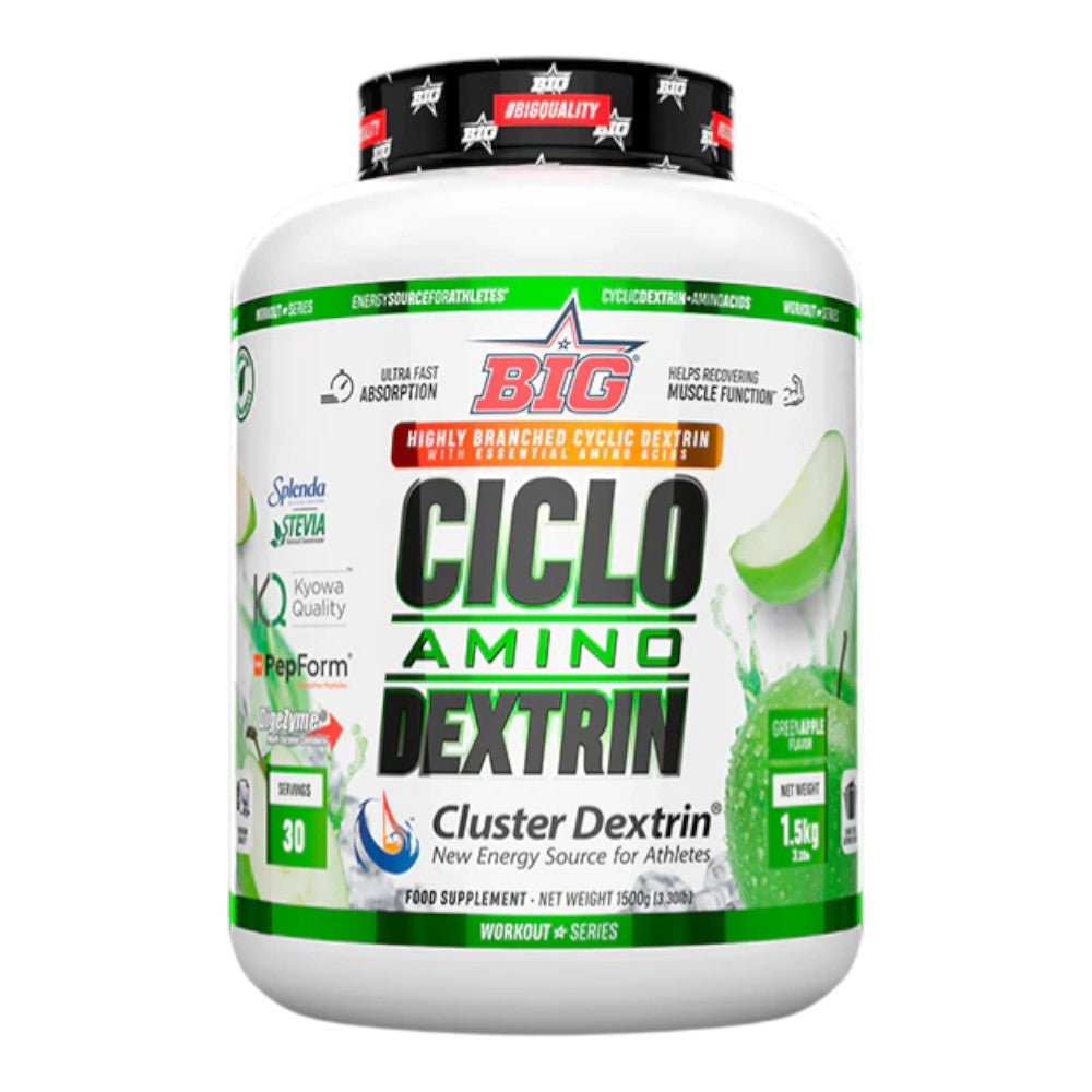 Ciclo Amino Dextrin 1,5 Kg de BIG® es un suplemento de nutrición deportiva de alto rendimiento que combina la eficiencia energética de los carbohidratos de última generación con la capacidad recuperadora de los aminoácidos. Formulado con la prestigiosa patente Cluster Dextrin® (Dextrina cíclica altamente ramificada), este producto ofrece un vaciado gástrico ultra-rápido, lo que permite una disponibilidad de energía casi inmediata sin causar pesadez estomacal o picos bruscos de insulina. Al integrar aminoácidos esenciales de alta pureza, Ciclo Amino Dextrin no solo suministra combustible a los músculos durante el entrenamiento, sino que también previene la degradación muscular y prepara al organismo para una recuperación post-esfuerzo mucho más eficiente.