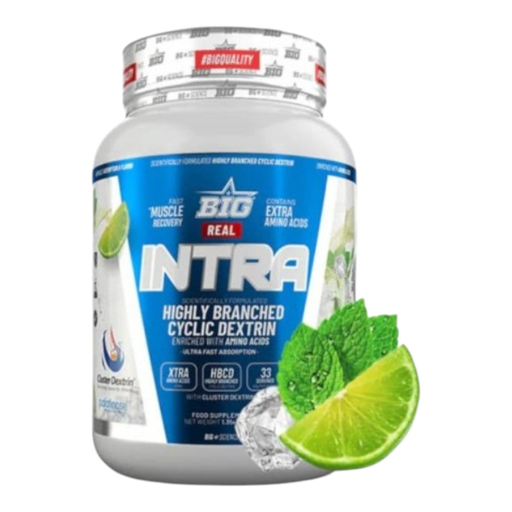 REAL INTRA de BIG science es un suplemento intra-entrenamiento basado en una combinación de diferentes glúcidos multitransportables con diferentes velocidades de asimilación, así como una selección de aminoácidos esenciales cuya combinación ayuda a mantener un elevado nivel de energía durante todo el entrenamiento, asegurando un mayor rendimiento a lo largo de la sesión y retrasando la aparición de la fatiga, con el mejor confort digestivo posible.