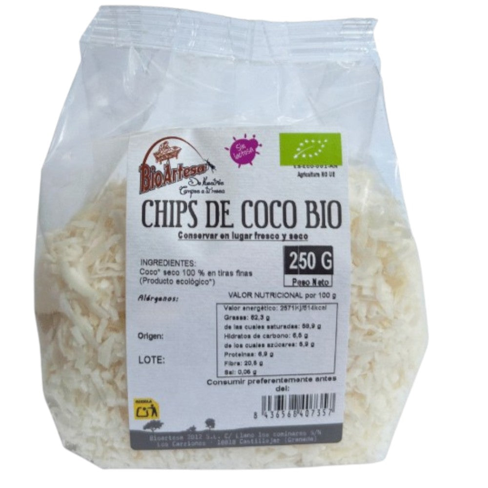 Deliciosas Chips de Coco de Bioartesa. Perfecta para entre comidas o para quitar el hambre por su alto contenido en fibra.