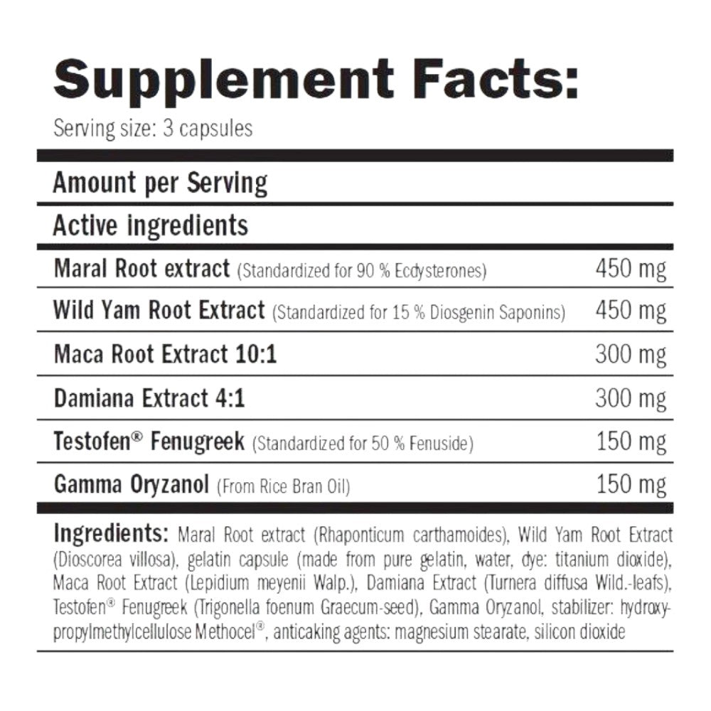 Wild Yam Root - Es un potente estimulador de la testosterona y de la GH (Hormona del Crecimiento) totalmente natural. Es una planta originaria de México que contiene precursores de la DHEA y se ha demostrado que puede aumentar la producción de Hormona del Crecimiento.
