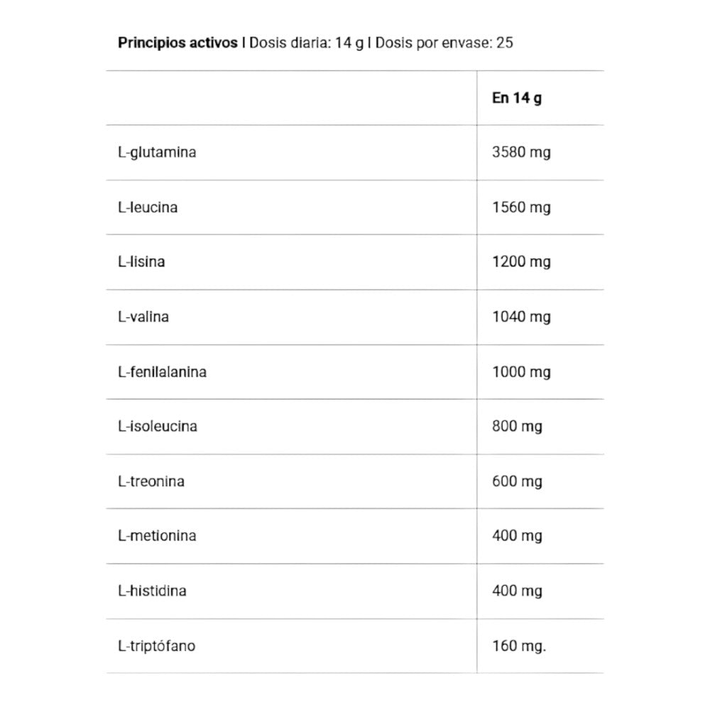 - Contiene una proporción ideal de 8.400 mg de aminoácidos esenciales.
