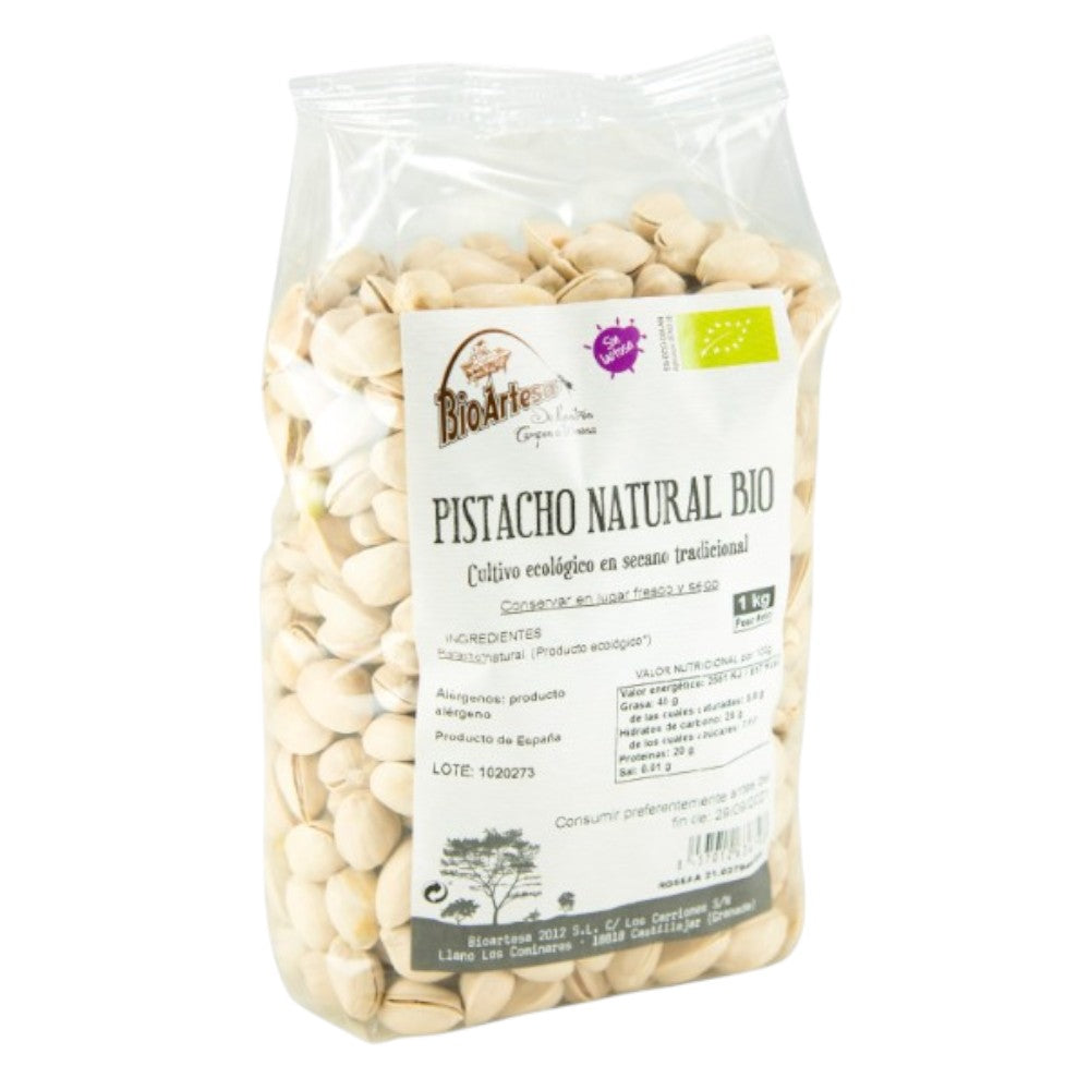 Pistachos ecológicos crudos de la marca Bioartesa. Pistacho calibre 22-23 envasados en atmósfera protectora.