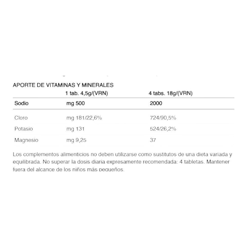 Disolver 1 tableta por cada 500ml de agua. Producto destinado al público adulto físicamente activo. No superar dosis diaria recomendada, 4 tabletas.