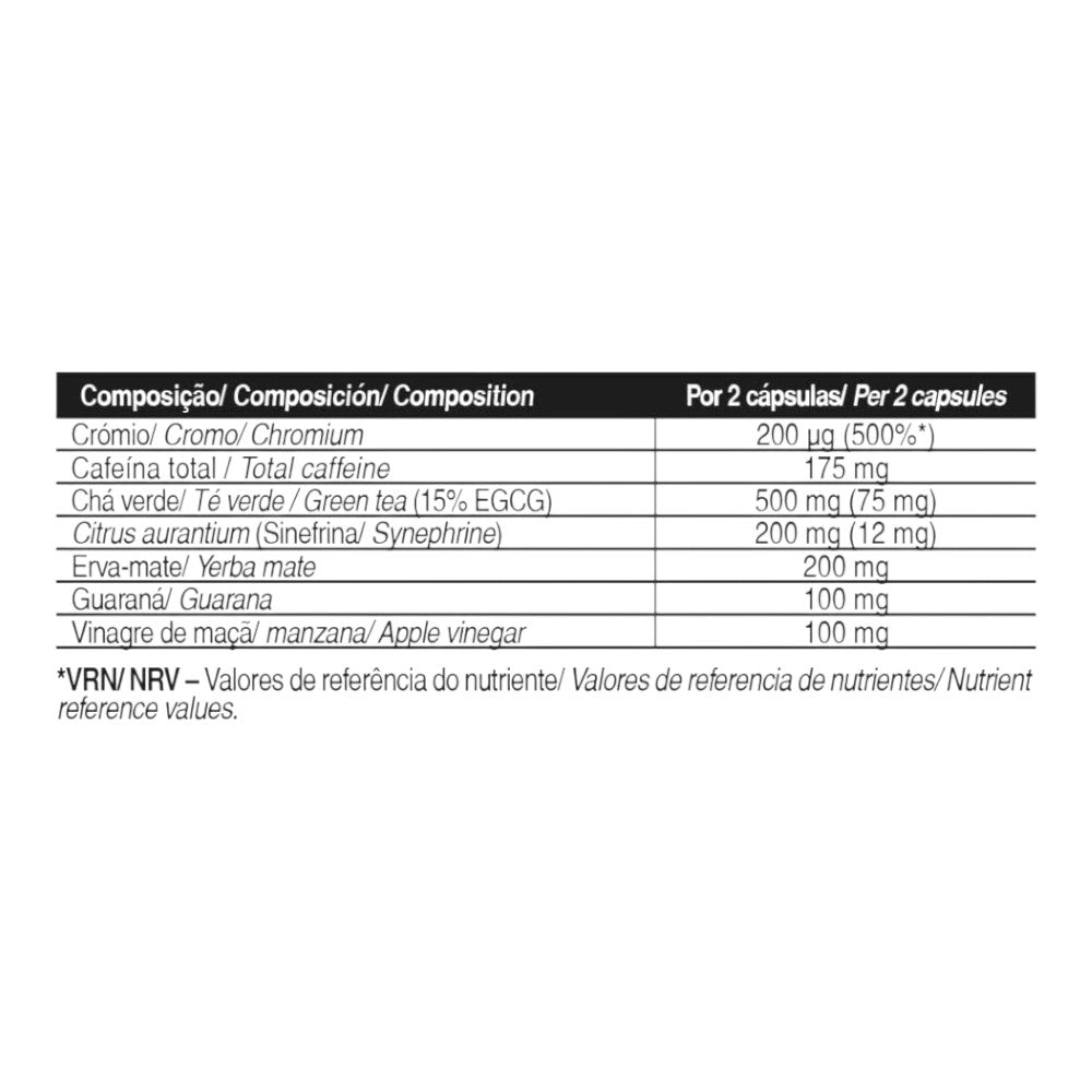 Thermogenic combina algunos de los principales ingredientes para la quema de grasas como son el té verde, el guaraná, la cafeína, la cola de caballo, el vinagre de manzana, Citrus aurantium, la yerba mate y cromo