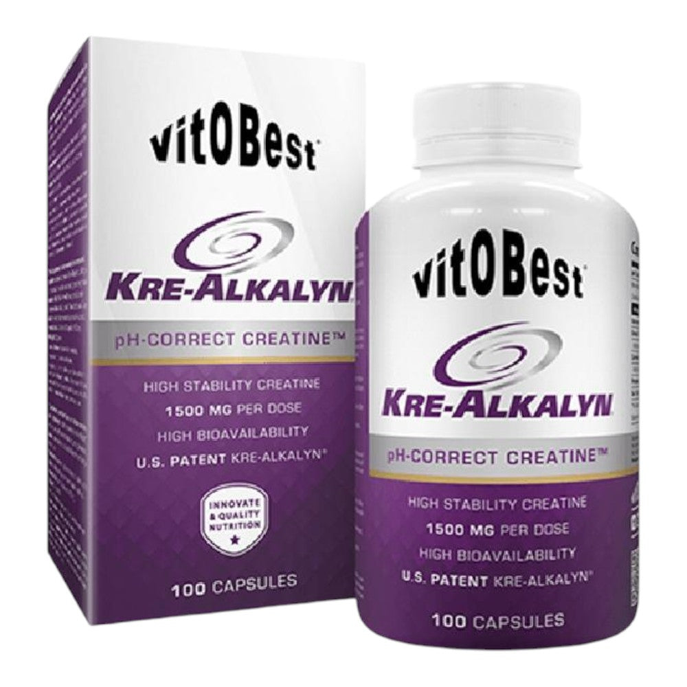 Kre-Alkalyn Cápsulas, de Vitobest®, contiene creatina patentada de última generación con una alta biodisponibilidad (Kre-Alkalyn®). Por su máxima absorción y estabilidad este ingrediente activo ayuda  a nuestro organismo a obtener el mejor y más inmediato combustible: ATP.