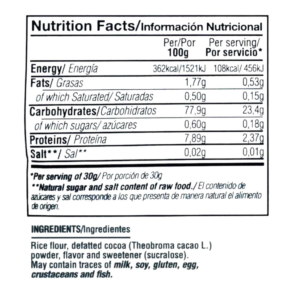 Harina de arroz, aroma y edulcorante (sucralosa).