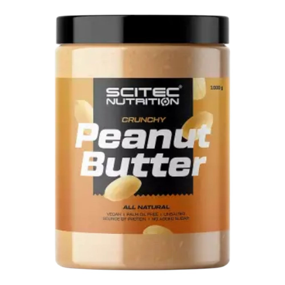 La Peanut Butter 1 Kg Crunchy de Scitec Nutrition es un producto dietético clasificado como Crema de Cacahuete Natural 100%. Se elabora exclusivamente con cacahuetes tostados, asegurando que el producto final esté libre de azúcares añadidos, sal, aceite de palma y conservantes. La versión Crunchy (Crujiente) mantiene todos los beneficios nutricionales con el añadido de trozos de cacahuete para una textura extra y un sabor potente.