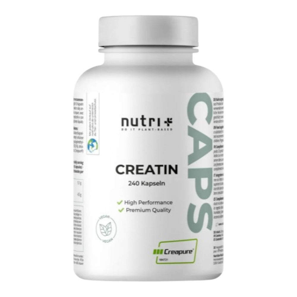 Las cápsulas de creatina nutri+ te ayudan a aumentar tu rendimiento físico. La creatina es necesaria en la contracción muscular como componente del fosfato de creatina para la obtención de ATP. Por lo tanto, es uno de los complementos alimenticios más populares y eficaces en el ámbito deportivo.