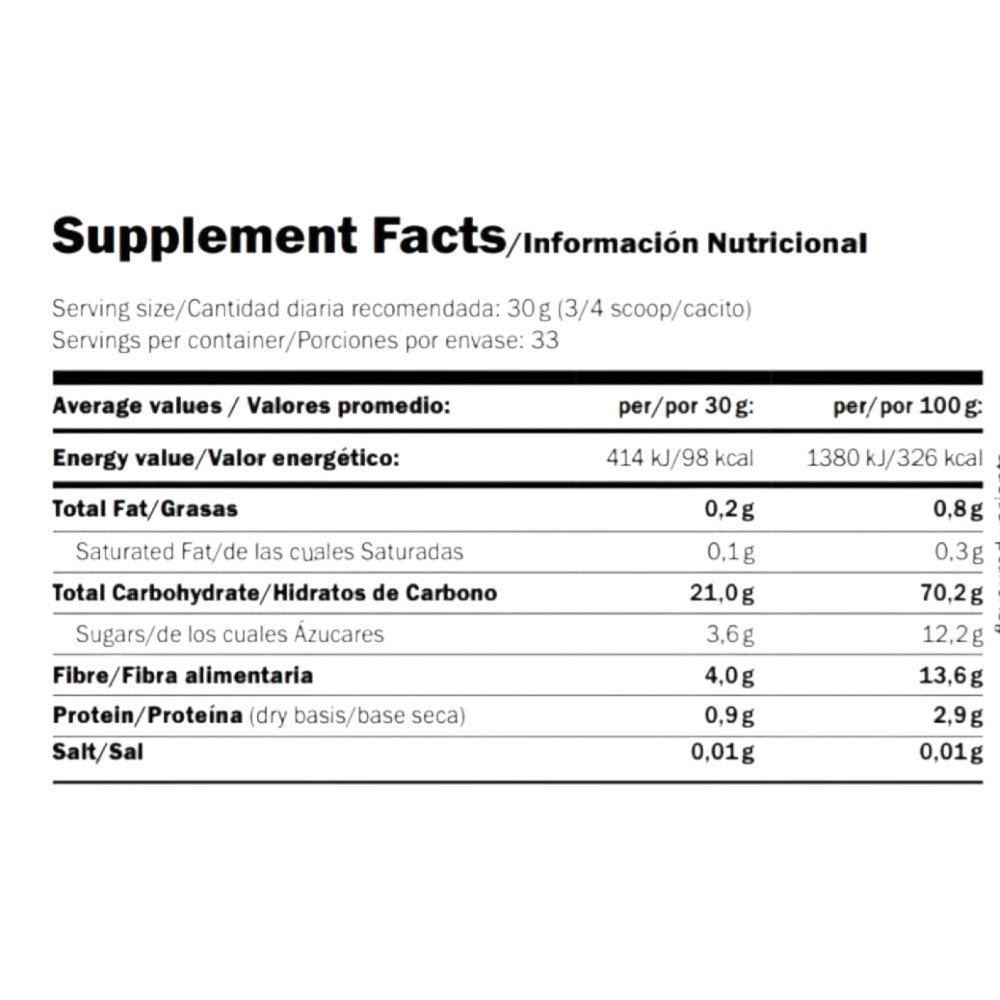 Sweet Potato Clean Carbs es una deliciosa y práctica manera de incluir el boniato en tu dieta, ya que puedes añadir la harina en frío a tus batidos de proteínas para enriquecerlos y darles un toque cremoso, o incluirlo en tus recetas favoritas como panes, bizcochos, etc… ya que es apta para cocinar.