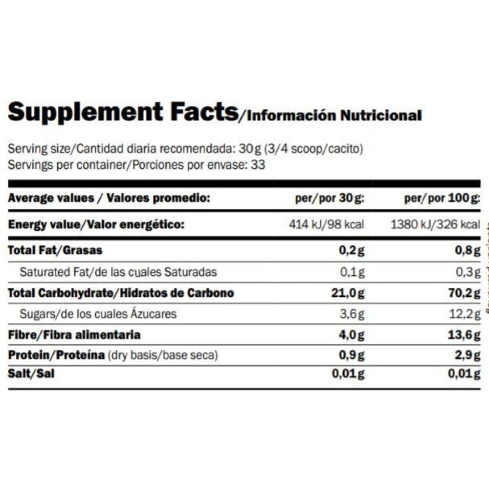 Sweet Potato Clean Carbs es una deliciosa y práctica manera de incluir el boniato en tu dieta, ya que puedes añadir la harina en frío a tus batidos de proteínas para enriquecerlos y darles un toque cremoso, o incluirlo en tus recetas favoritas como panes, bizcochos, etc… ya que es apta para cocinar.