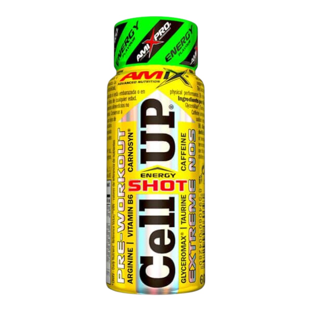 CellUp Shot de Amix Nutrition es un pre-entreno líquido altamente concentrado diseñado para ofrecer un impulso inmediato de energía, enfoque y rendimiento. Su fórmula combina cafeína, beta-alanina, taurina, citrulina malato, extractos vegetales y vitaminas del grupo B, creando un efecto estimulante rápido y duradero ideal para entrenamientos intensos.