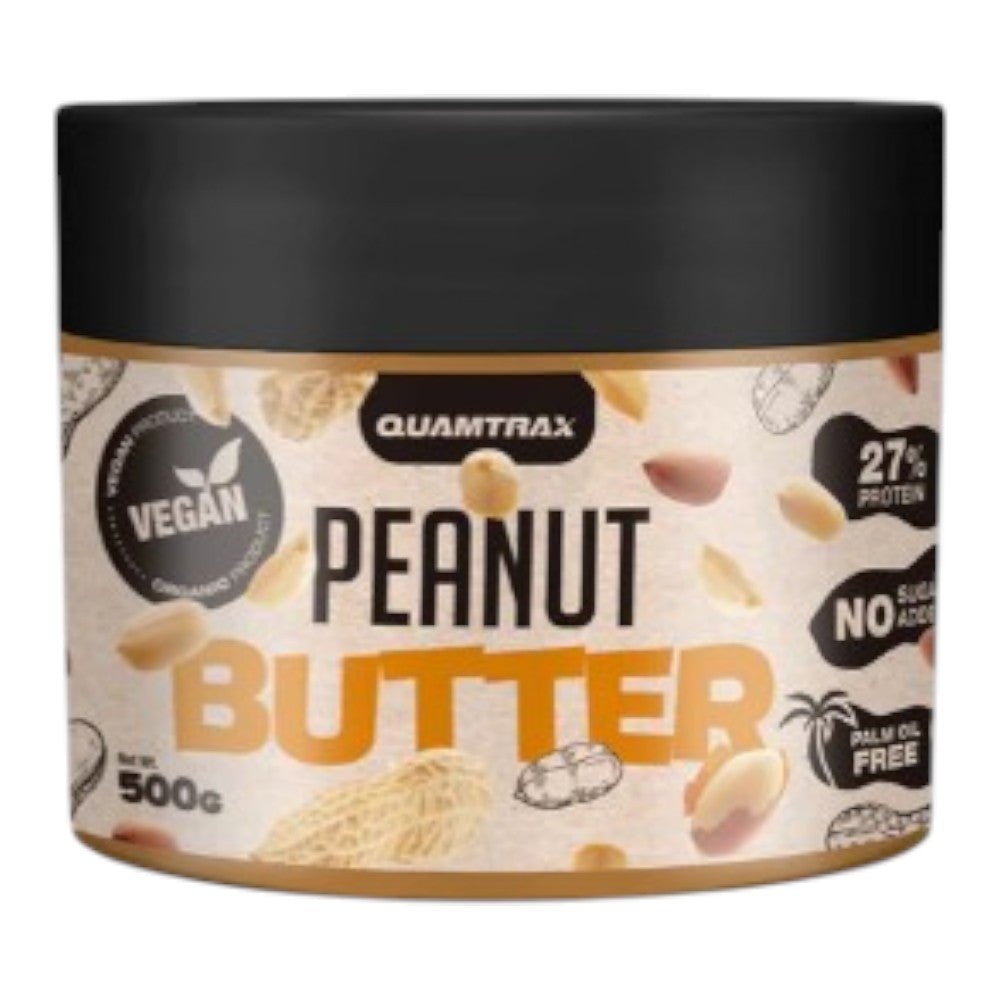 El Peanut Butter 500 Gr es un alimento, clasificado como Crema de Cacahuete Natural 100% Suave. Este formato es la presentación de medio kilogramo de la popular crema de cacahuete de Quamtrax. Está elaborada únicamente con cacahuetes tostados, ofreciendo una textura suave y homogénea, y se distingue por estar libre de aditivos, azúcares añadidos, sal o aceites hidrogenados.