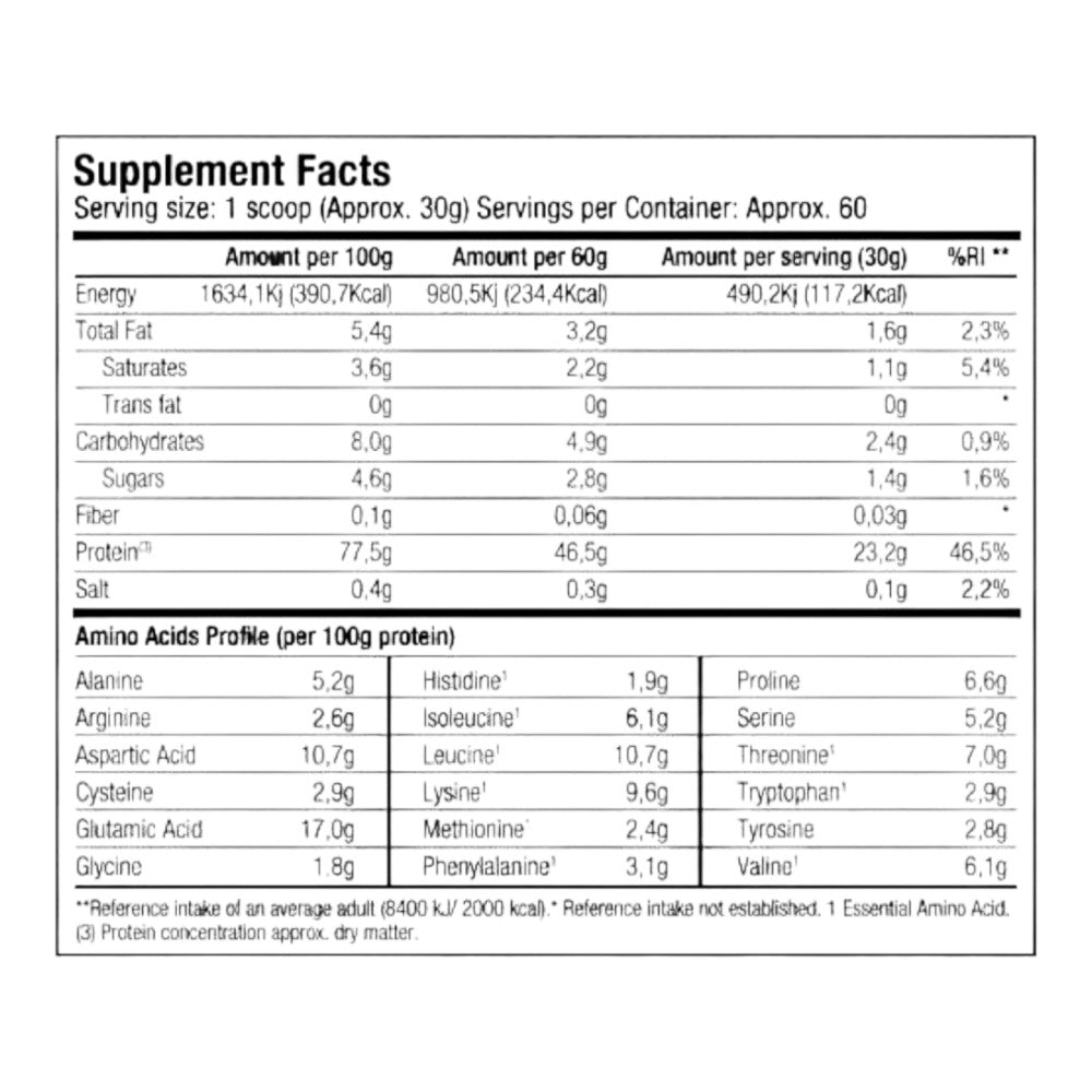 Tomar 1 cazo (30 gramos aproximadamente) con 180-200 ml de agua fría o de su bebida favorita, mezclar durante 20 segundos y beber inmediatamente. Cambie la cantidad de líquido si desea conseguir una intensidad o consistencia diferente. Beber de 2 a 4 servicios diariamente o hasta conseguir satisfacer sus necesidades de proteínas. Para incrementar la ingesta de proteínas por servicio utilice leche baja en grasa. Usar como parte de un programa de entrenamiento y nutrición adecuado.