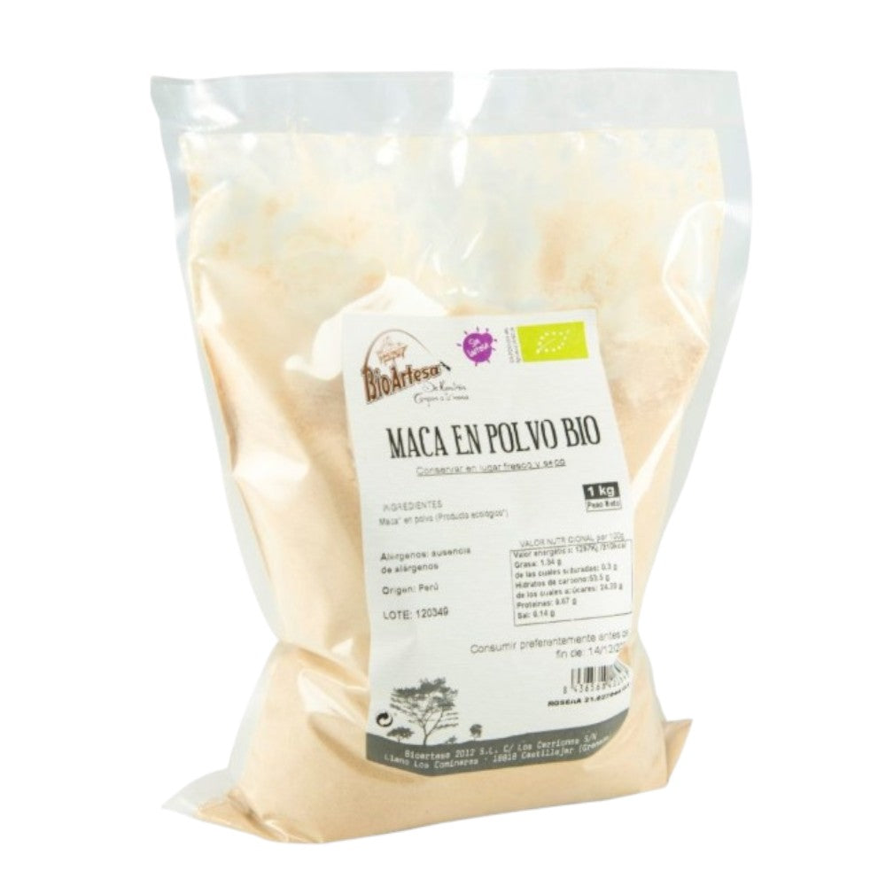 Polvo de raiz de maca* (Lepidium meyenii). puede contener trazas de gluten, soja, sesamo y frutos secos. (*)=De cultivo ecologico.