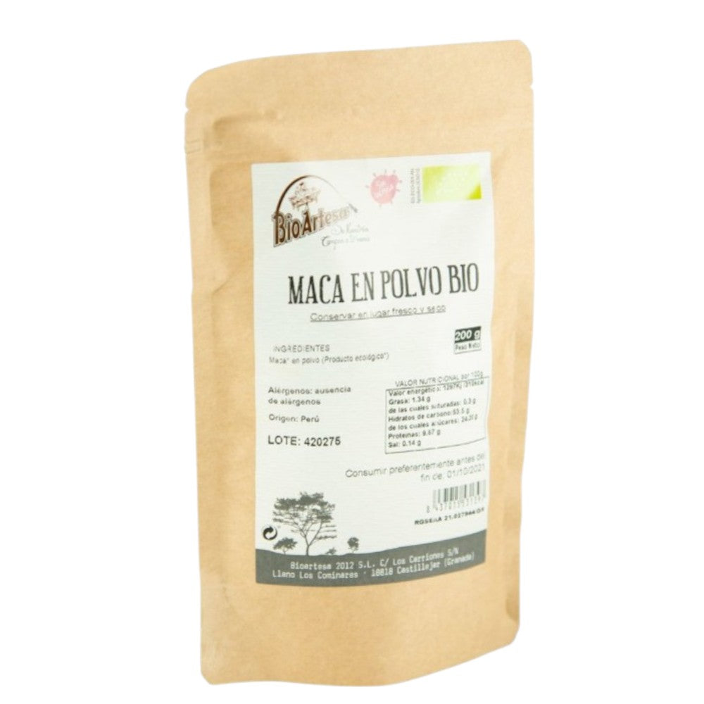 Polvo de raiz de maca* (Lepidium meyenii). puede contener trazas de gluten, soja, sesamo y frutos secos. (*)=De cultivo ecologico.