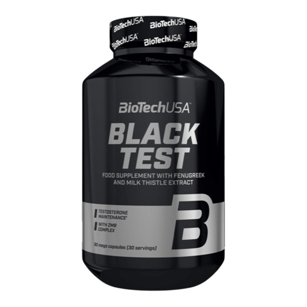 Black Test de BioTech USA es un suplemento en mega cápsulas que contiene una fórmula con extracto de fenogreco, cardo mariano y brocolí, beta alanina, L-arginina, niacia y ZMA que ha sido diseñado para potenciar la producción natural de testosterona.