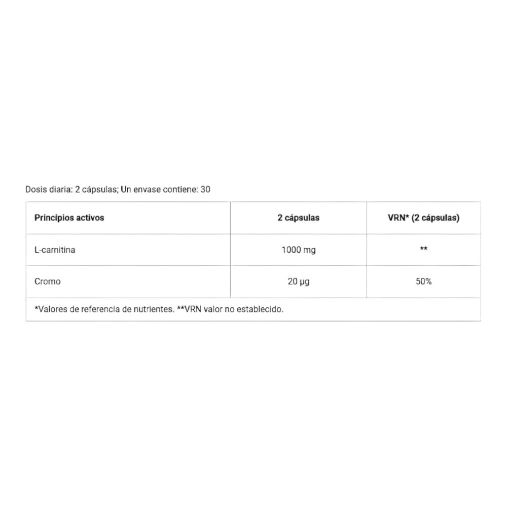 El valor de este producto reside en la sinergia de sus dos ingredientes clave. La L-Carnitina actúa movilizando la grasa hacia las mitocondrias, donde se utiliza como energía durante el ejercicio. El Cromo contribuye al metabolismo normal de los macronutrientes y a mantener los niveles normales de glucosa en sangre, lo cual es crucial para el control del apetito y la gestión de la energía. El formato de 60 cápsulas es conveniente para una dosificación precisa y es ideal para personas sensibles a la cafeína, ya que es un quemador de grasa sin estimulantes.