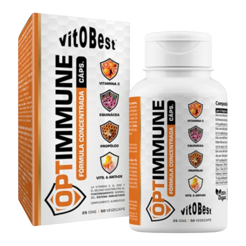 El OptImmune 50 Caps de Vitobest es un complejo formulado específicamente para el refuerzo y optimización del sistema inmunológico. Combina vitaminas, minerales y extractos naturales clave que actúan sinérgicamente para mejorar la respuesta defensiva del organismo ante agentes externos.